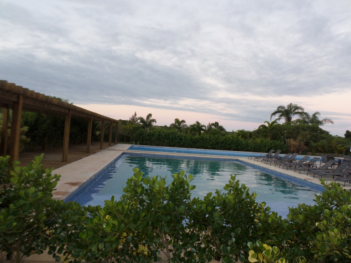 Casa de huéspedes Alugo (anexo) con entrada independiente a la casa principal. Tiene balcón, dormitorio doble (9,30 m2), televisor inteligente, Sky prepago (paquete digital), baño grande, cocina equipada. A pocos metros de la playa poco profunda/manguinhos, el condominio tiene un club con piscinas, así como pistas deportivas y un lago. Hay aparcamiento disponible en la parte delantera de la casa principal. Siéntase libre de traer su ropa de cama y baño para una mayor higiene, o si lo prefiere, le proporcionaremos la nuestra.