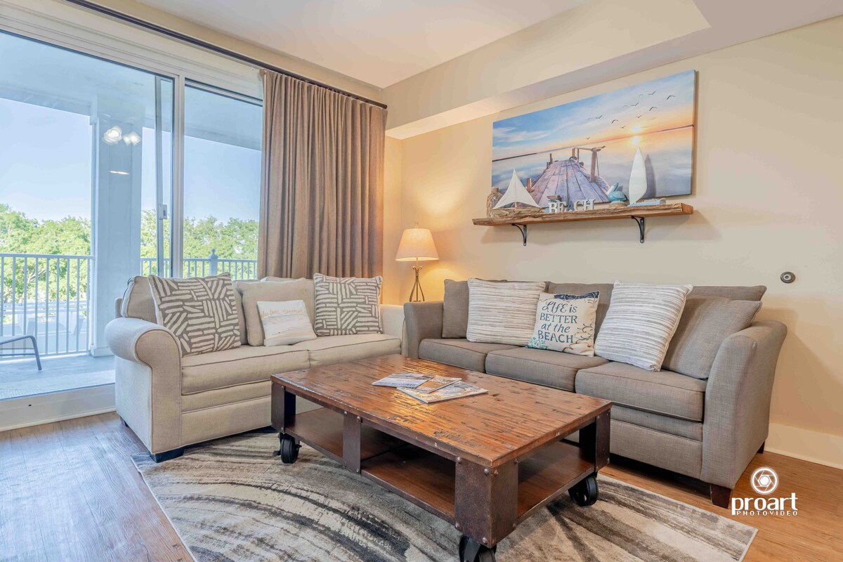 ¡Bienvenido a nuestro apartamento de playa en Sandestin Golf and Beach Resort! ¡Este Destin Resort de 2400 acres ofrece golf, piscinas, playa, tenis, ciclismo, paseos en barco, pesca, compras, pueblo para caminar, cine y mucho más! Te ofrecemos un condominio limpio y cómodo con 2 dormitorios grandes, 3 baños, sofá cama queen y lavadora/secadora. ¡Disfruta del balcón de un dormitorio, porche protegido con vistas a la bahía, CARRITO DE GOLF de cortesía y acceso a 2 piscinas climatizadas gratuitas! ¡Apto para familias! ¡Ven a disfrutar de nuestro HAPPY PLACE! NO SE ADMITEN MASCOTAS