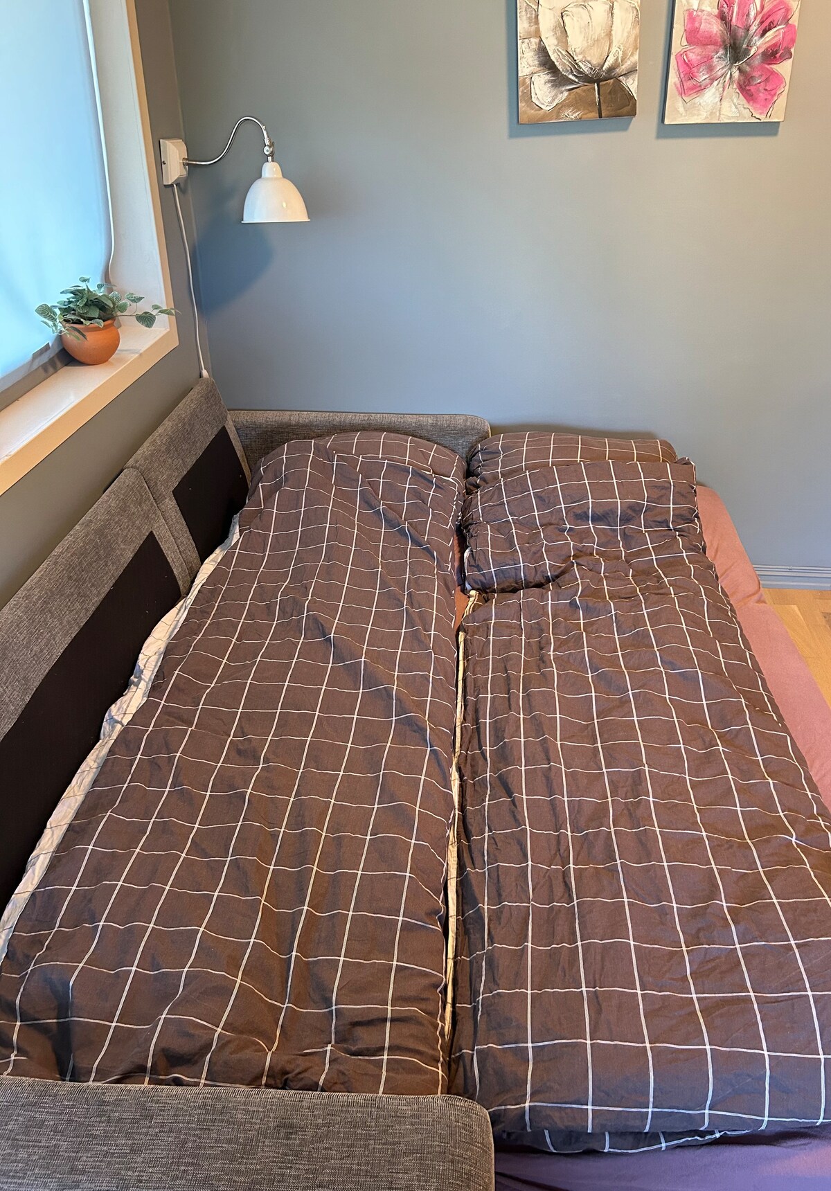Alquilamos una habitación grande en nuestra casa, con baño privado con ducha y WC. Hay buenas camas, una cama doble grande de 200 cm y una cama individual de 90 cm. Entrada con cerradura de código y estacionamiento gratuito. Vivimos cerca del centro de Sola y del aeropuerto, y hay un autobús desde allí que para cerca de nuestra casa. En la habitación hay una pequeña nevera con congelador, microondas, freidora de aire y hervidor de agua, té y café. Hay acceso a un cargador de coches eléctricos, por un cargo adicional. Acceso a lavadora/secadora