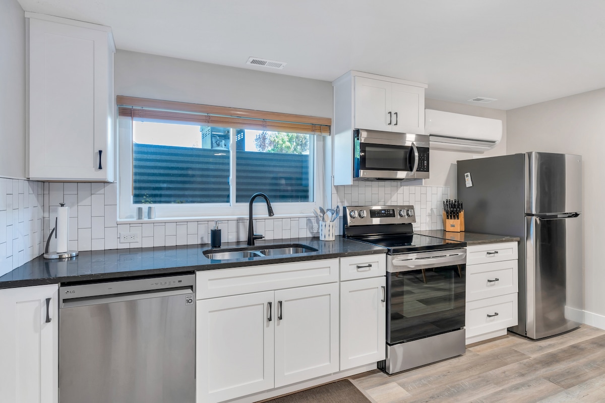 Unwind at this spacious 1,200+ sq. ft, cozy, cabin-like retreat minutes from world-class skiing and hiking. Less than 10 minutes from Little and Big Cottonwood Canyons, this is your perfect home base. Enjoy a new full kitchen, warm gas fireplace, large smart TV, super-fast Wi-Fi, desk, plush king, queen and full beds, luxury linens, washer/dryer, and large backyard. Private entry and off-street parking. Living rm. has a 4K HDR TV w/ most smart TV features, Roku, Amazon, YouTube, Netflix, etc.
