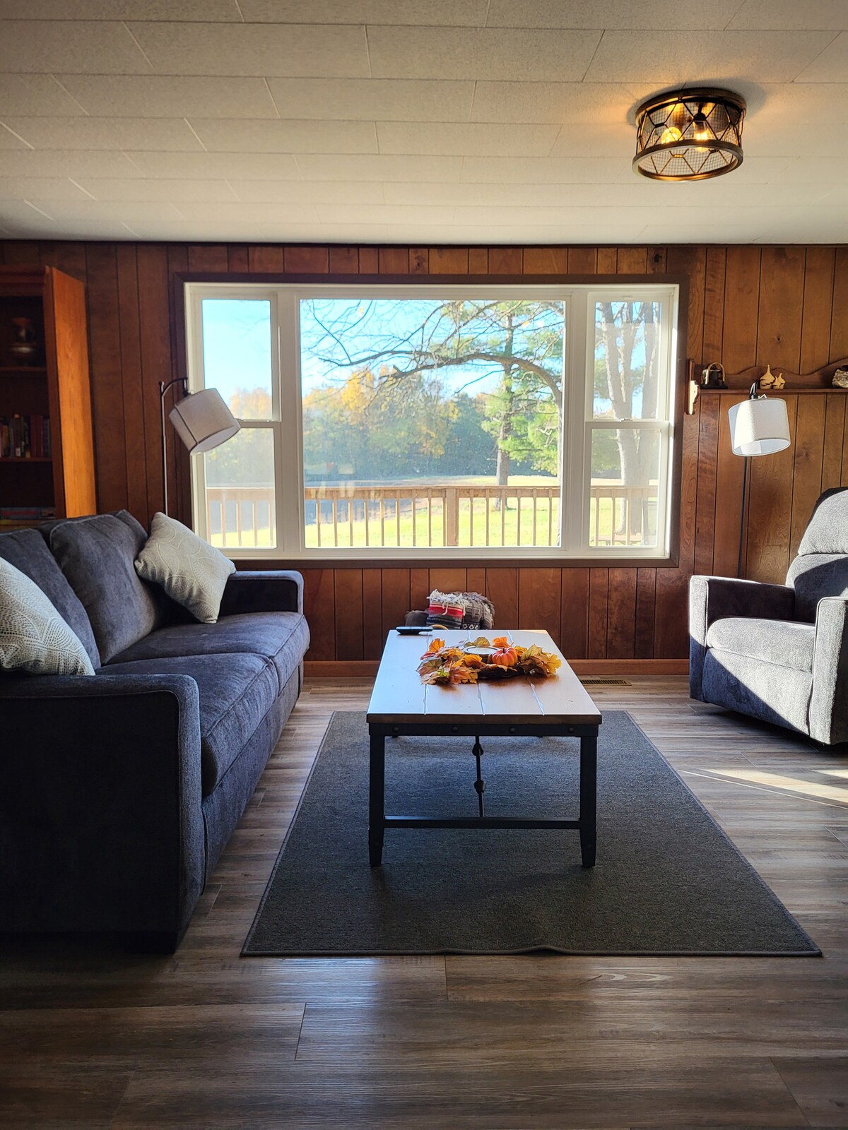 ¿Alguna vez has deseado poder pasar la noche en el huerto de calabazas? Ven a disfrutar de la granja en la «temporada baja». Tenemos algunos de nuestros favoritos de los fans, como el contenedor de maíz, los columpios, el estadio y la alimentación de cabras disponibles para que los huéspedes disfruten, así como un hermoso estanque abastecido para la pesca. La vista desde las puertas correderas dobles de ocho pies o desde la terraza da al estanque y a las colinas onduladas con una hermosa vista para tu disfrute. ¡Ven a disfrutar de la granja!