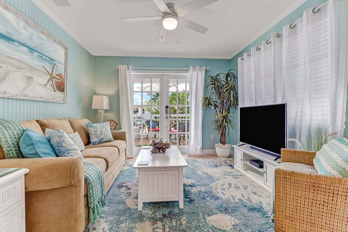 Located less than One Mile from the Beach in the Center of the City Hustle, Open Spaces & Bright Beachy Vibes gently remind you of why you came! French Doors in both Bdrms open to a Beautiful Screened Lanai with Outdoor Dining & BBQ Overlook a Little "Beach". Master Bdrm has a King Bed Ensuite Bathroom w/Shower; additional Guest Bdrm has 2-Twins or King Bed and Hall Guest Bathroom. Enjoy Pickleball on our shared court or ride one of our bikes to the nearby beaches, grocery, or restaurants!