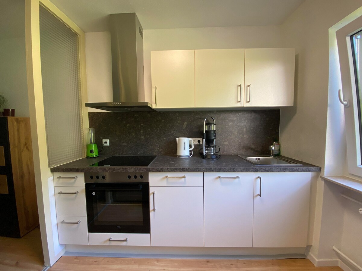 Nuestra casa se encuentra en el centro de la ciudad, numerosas oportunidades de compras, bancos, Los proveedores de servicios y los restaurantes también están a pocos pasos de aquí Minutos. Está a unos 800 m del estanque de Würzbach, hay una parada de autobús y la estación de tren está cerca. 70 m², amplio comedor/sala de estar con cocina totalmente equipada, baño espacioso con ducha/lavabo/inodoro a ras del suelo, Dormitorio con cama doble grande, lavadora.
