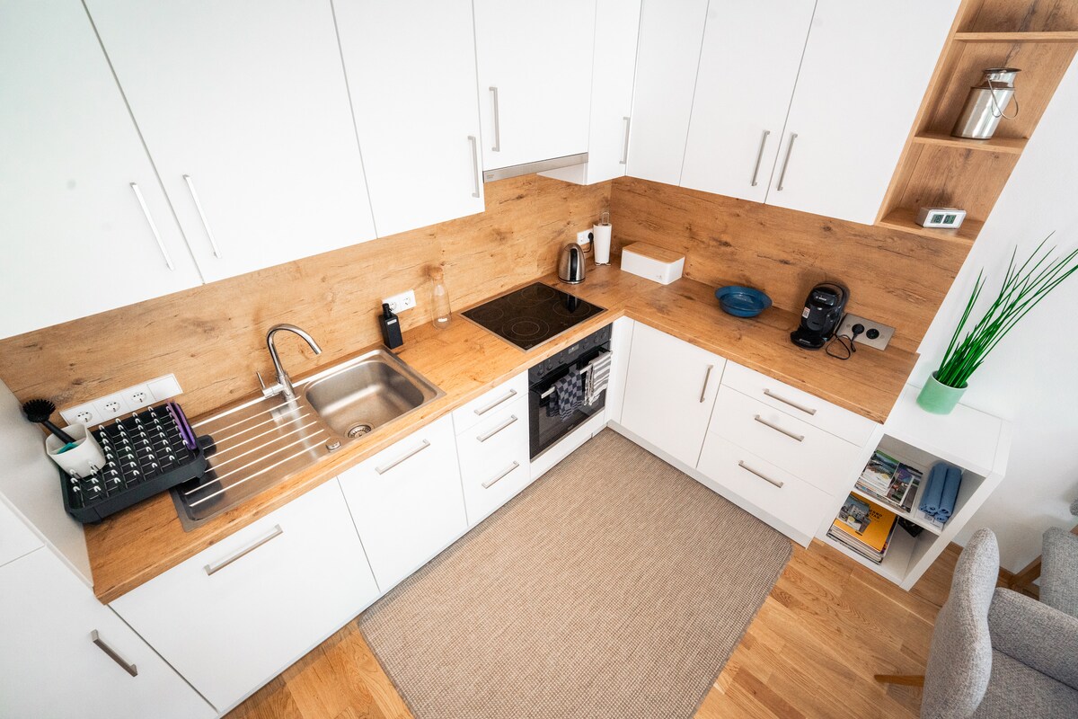 En una de las zonas más antiguas, nuestra casa de 400 años se encuentra en un lugar muy tranquilo, pero lo suficientemente céntrico como para llegar al casco antiguo en 10 minutos a pie. Hay una panadería cerca. El apartamento tiene un salón/dormitorio y una habitación con pequeña cocina/comedor, con un pequeño baño (ducha). El WC está situado al otro lado del pasillo, a unos 3 metros de la entrada a tu apartamento, solo para que lo utilices. De nada para usar nuestro gran jardín. También estamos encantados de prestarle una bicicleta (7 €) o un tándem, la mejor manera de explorar Salzburgo.