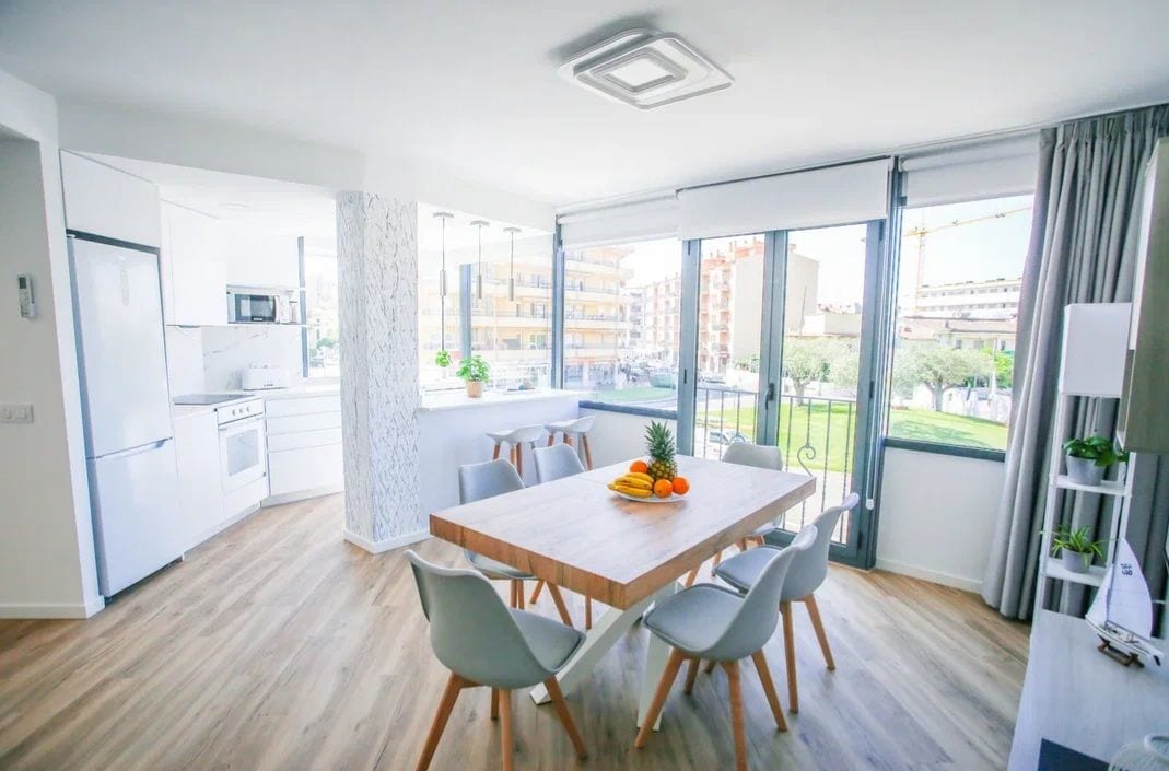 Moderno apartamento, ideal para familias. A 350m (4 minutos a pie) de playa. Piscina comunitaria. Terraza privada con barbacoa. 1a planta con ascensor. Completamente equipado, ropa de cama y toallas. Lavadora, lavavajillas. Aire acondicionado en todas habitaciones, Smart TV, WiFi 600 Mb. Parada de bus y taxi a pie de calle. Garaje cerrado: 1 vehiculo. Fácil aparcamiento en alrededores. Bares, restaurantes, tiendas, farmacia, supermercados y oficina turismo - todo a menos de 2 minutos caminando.