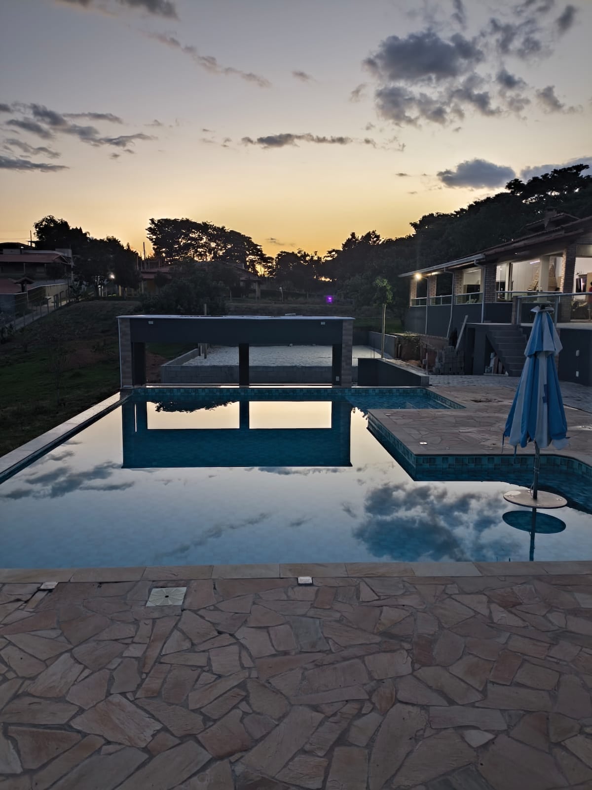 Hermosa granja de mil metros con piscina, amplia zona de ocio con parrilla, estufa y horno de leña, sala de juegos con mesa de billar, excelente lugar para el descanso y el ocio, zona muy tranquila y acogedora. Situado a solo 7 km del centro de Guararema. Casa equipada con todos los utensilios necesarios. Ideal para familias con niños.