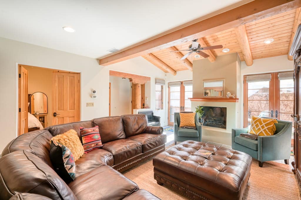 Cozy Santa Fe Retreat – Walk to Downtown Discover authentic Santa Fe charm at this privately owned duplex in the close to downtown. A short stroll takes you to the historic plaza, New Mexico State Capitol, and dining spots, with Canyon Road also within reach for art lovers. Relax by the kiva fireplace or unwind in the private backyard with the sound of a peaceful fountain. Free parking in front for your convenience. Ideal for art, history, and relaxation, this is the perfect Santa Fe getaway!