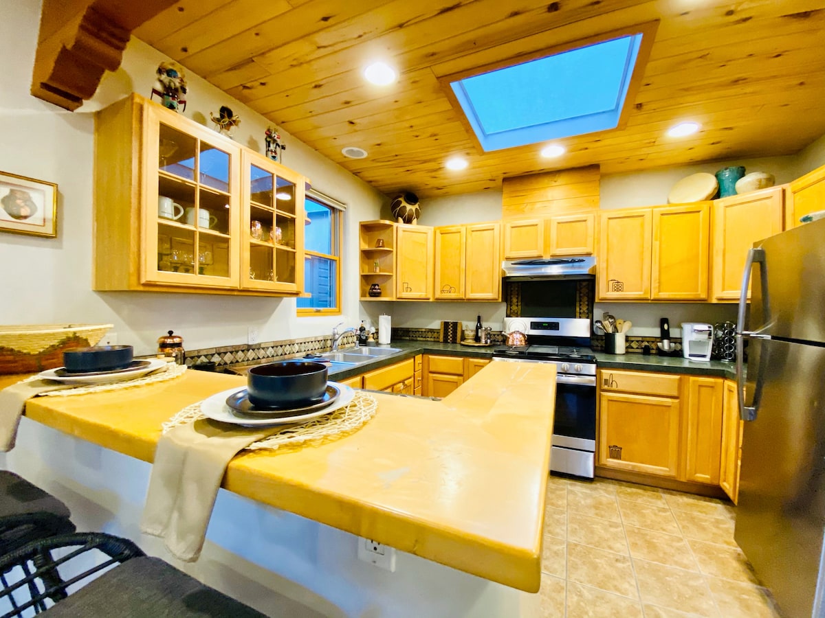 Dos Sueños - Dos sueños... A POCA DISTANCIA DE LA PLAZA Hermosa y espaciosa casa de 2 dormitorios y 2 baños con elementos tradicionales de Nuevo México. Ubicada en el barrio histórico de Santa Fe, con paredes de adobe y puertas de madera. Pintoresca y tranquila calle arbolada, a 12 minutos a pie de la plaza histórica. Perfectamente diseñada con 2 áreas de dormitorio separadas y privadas, sábanas de lujo, toallas y artículos de tocador de alta gama. ¡Una casa bien equilibrada con decoración del suroeste, diseñada para la comodidad y la tranquilidad!