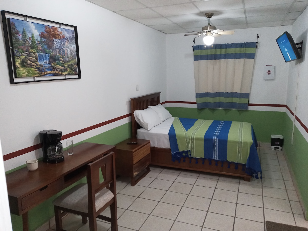 Suite privada y renovado en el 2021, al interior de un edificio (2do nivel) en el corazón de la zona comercial de la ciudad. Con baño privado. Zona comercial y segura. No tiene estacionamiento, pero puedes estacionar sin problema en la calle. Ubicado en calle principal (ruido). Entrada y llegada automática. PUNTOS CERCANOS: • Mercado local • Farmacia / súper 24 horas • Bancos ATM • Restaurantes, Cafés y Bares • Estación de autobuses ADO El centro de la ciudad está a 1km de distancia.