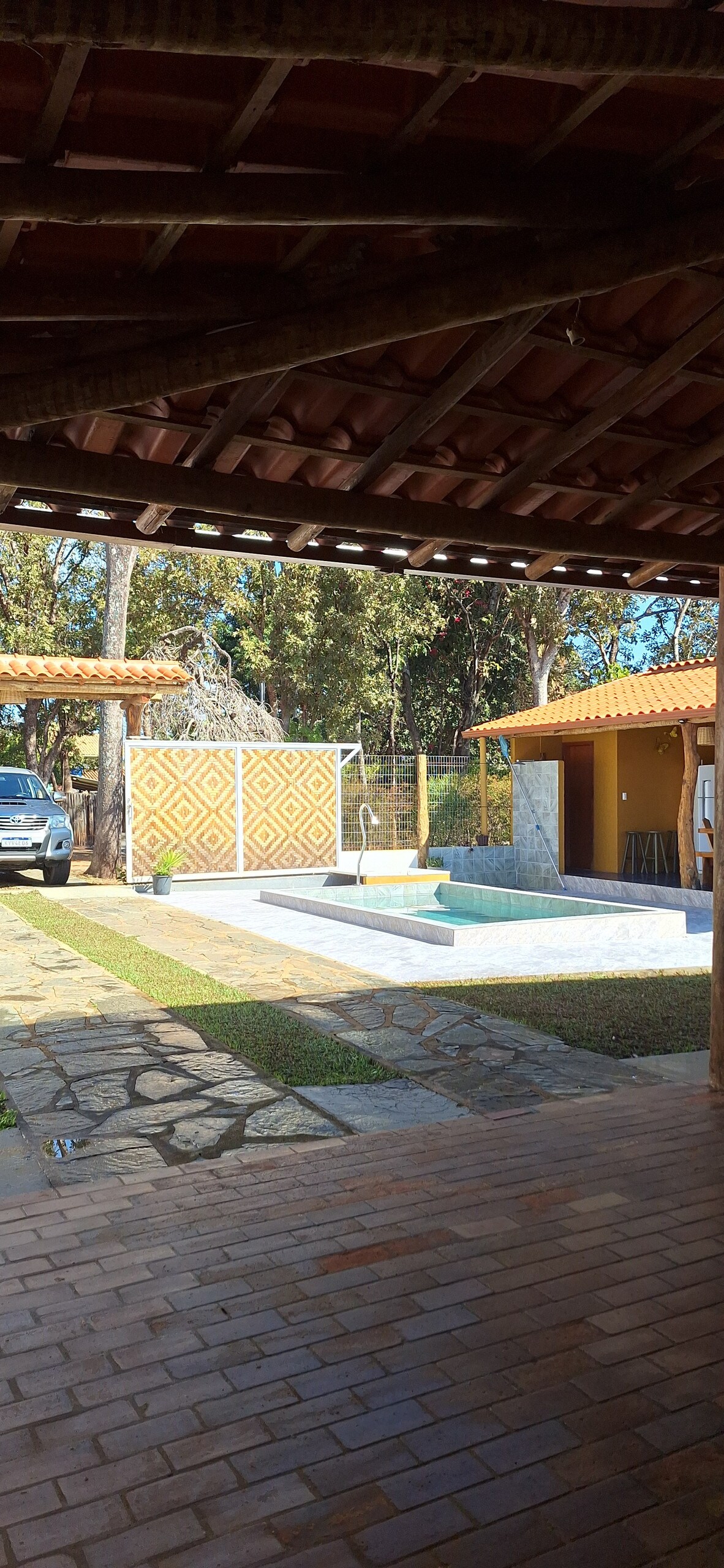 Aquí disfrutarás de la naturaleza. La casa cuenta con un espacio gourmet totalmente integrado con la piscina con terraza cubierta de enredaderas, césped y ducha, todo ello rodeado de un hermoso paisaje para que lo disfrute con su familia, amigos y mascotas. La casa está a 400 metros de la cascada Véu da Noiva, a 2 minutos en coche del centro comercial con bares y restaurantes y muy cerca de los sectores de escalada. Comodidad y seguridad. ¡Bienvenido/a!
