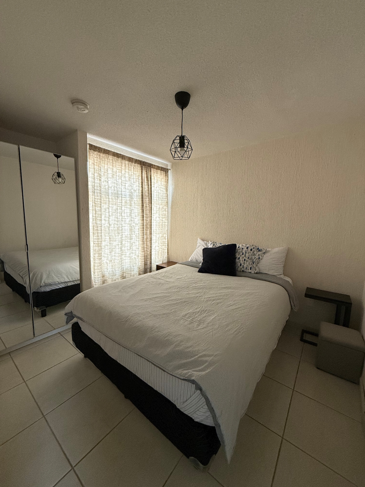 Disfruta de este cálido alojamiento monoambiente de espacios abiertos sin muros increíble para descansar y realizar tus actividades elementales cuenta con un amplio jardín, entrada independiente y cochera para un vehículo, una agradable cocina, pequeña sala de televisión y un espacio con dos camas matrimoniales se encuentra a 5 minutos de plazas comerciales y a 20 minutos del centro histórico