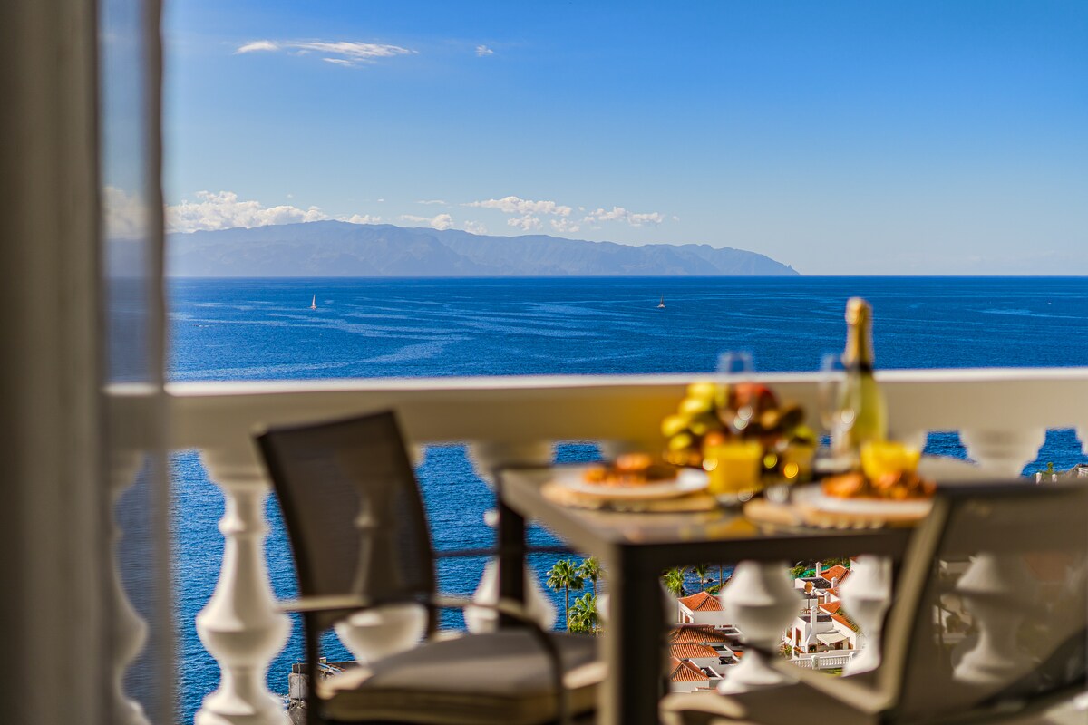 Ubicado en Crystal I Luxury Apartments en Los Gigantes. Apartamento de lujo (135 m²) con terraza de 120 m², piscina privada climatizada y preciosas vistas al océano, La Gomera y los acantilados de Los Gigantes. Dos dormitorios con baños en suite, amplio salón, cocina totalmente equipada, aire acondicionado en todas las estancias, wifi de alta velocidad, lavadora/secadora y plaza de aparcamiento privada subterránea.