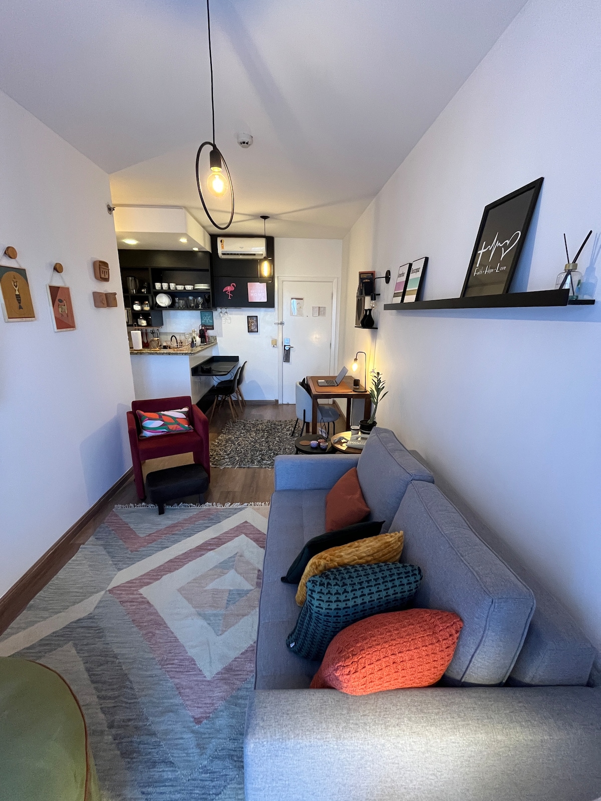 Elegante apartamento de 50 m² ubicado en Bela Vista, tiene portero las 24 horas. 2 dormitorios (solo 1 con aire acondicionado y cama tamaño queen, el segundo es bastante pequeño y se puede utilizar como oficina, con un sofá cama doble) y 1 baño. Con vistas increíbles desde todas las ventanas, es un gran lugar para trabajar y relajarse. El jet-tube privado en el balcón es un lugar fantástico para disfrutar de las vistas de la ciudad. Ideal para parejas, profesionales o familias pequeñas que buscan comodidad, conveniencia y una de las mejores vistas de la ciudad.