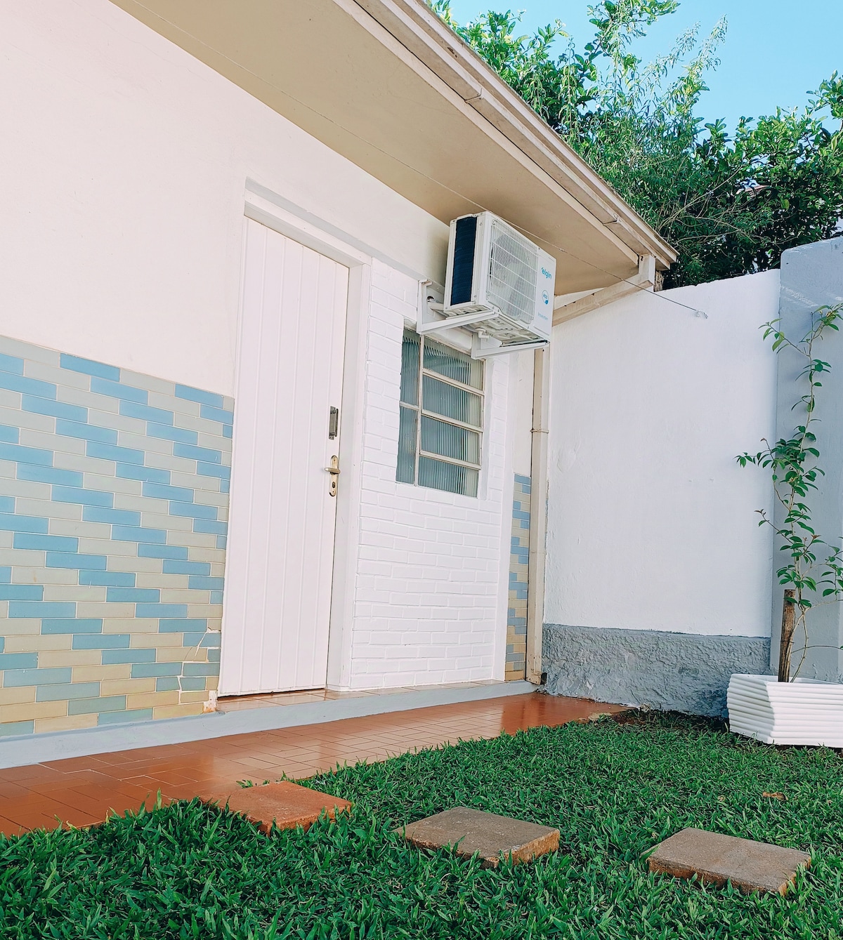 Situado en el centro de la ciudad de Santo Ângelo, cerca de gasolineras con tienda de conveniencia, un mercado 24 horas, supermercados, farmacias, gimnasios y plaza. Suite Habitación privada con aire acondicionado y TV con lista de canales Premier, películas y series. Acceso privado, puerta con cerradura. Mesa para estudiar, trabajar. Baño completo, privado dentro de la habitación. Garaje dentro del patio con puerta electrónica. No se permiten visitantes en la suite. No se permite fumar dentro de la suite.