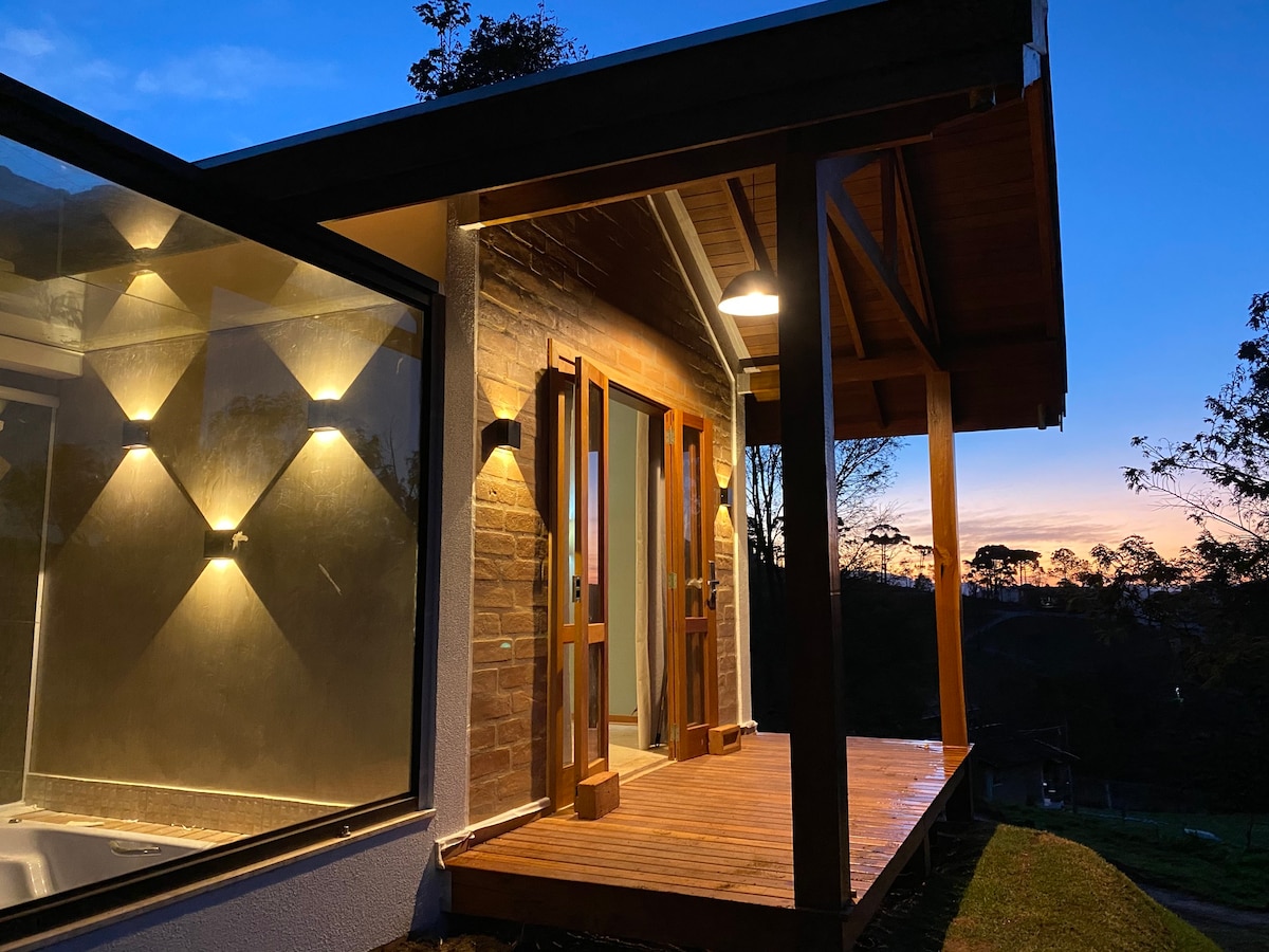 🌈 ❤️Bem Vindos RECANTO CONEXÕES Cabana Paz Desfrute de um final de semana a dois com privacidade, requinte e sossego Lugar tranquilo, cercado pela natureza vista deslumbrante. Ambiente planejado com cuidado, para quem busca aconchego. Venha desfrutar desse espaço cercado por montanhas e tranquilidade. O Chalé Paz e um espaço elegante, com design aconchegante. Aproveite aprecie um lindo pôr do sol tomando um vinho! Na lareira ou fogueira chão . Hidro dupla com vista deslumbrante