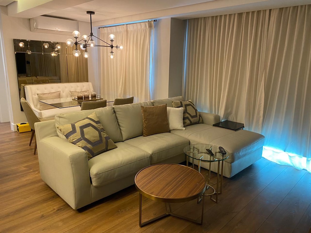 Moderna torre de lujo, ubicado en uno de los lugares más céntrico de la ciudad de Santo Domingo. El apartamento está en un 7 piso, tiene 3 habitación con tv 65 pulgata , baño, sala, cocina, área de lavado, balcón, 2 estacionamientos techados gratuito, seguridad 24H. Sei personas pueden dormir cómodamente, el edificio tiene su propia piscina en el área social ubicada en el 6to piso, gimnasio, terraza social, área infantil, pista de jogging, BBQ y sauna , spa.
