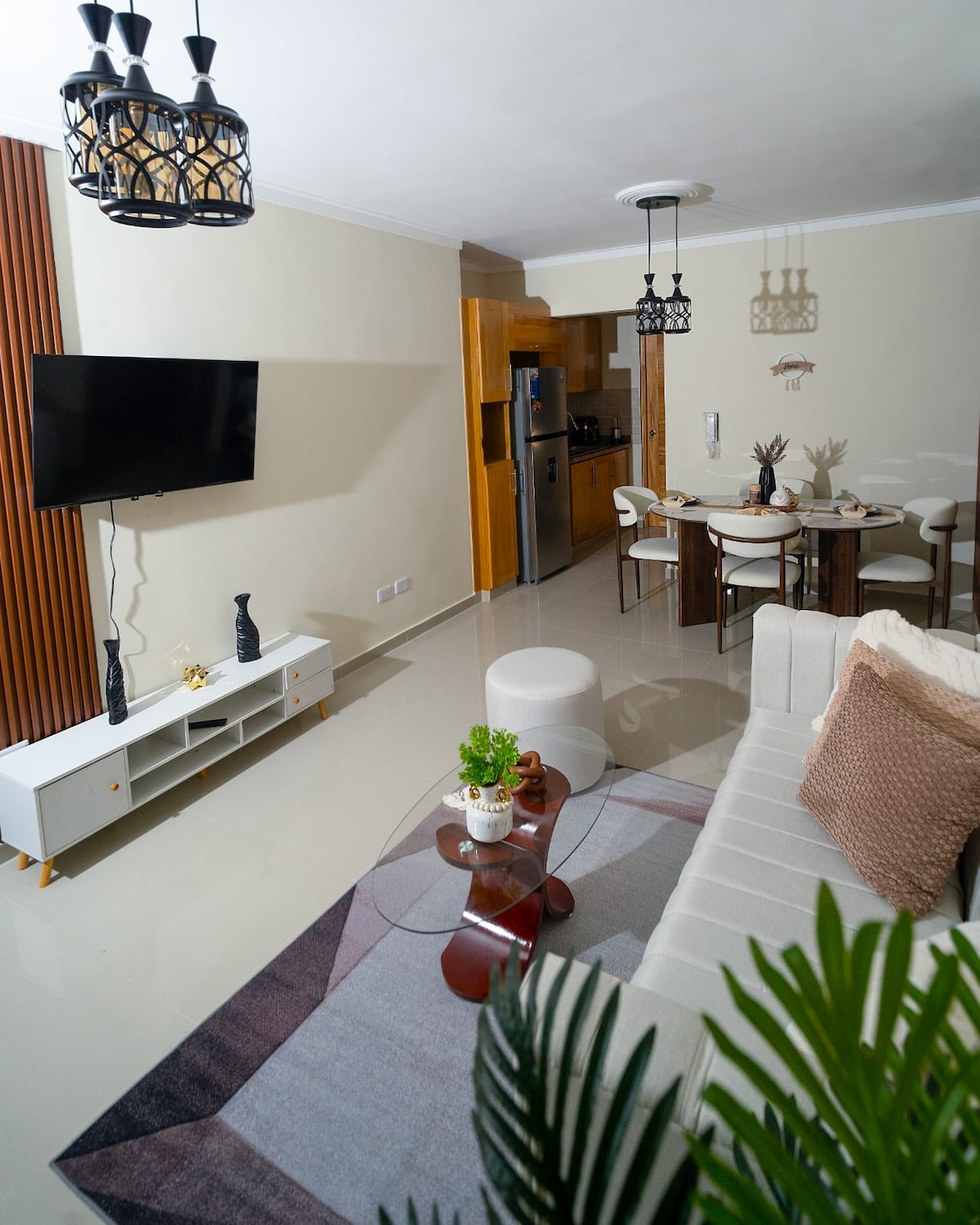 Este hermoso apartamento te hace sentir como en casa Ubicado en Santo Domingo Norte con fácil acceso a centros comerciales, restaurantes, tiendas y todo lo necesario para que te sientas cómodo. Cuando abres la puerta, te sumerges en la comodidad, la luz y el entretenimiento del apartamento.