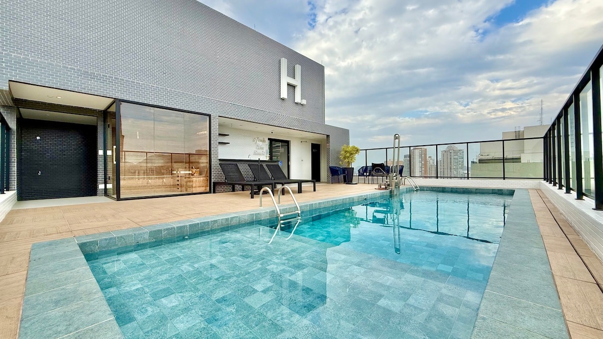 ¡Decorada con una hermosa vista y piscina en Boqueirão!