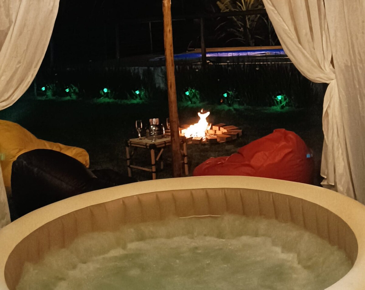 Propriedade privativa, com vista para uma linda mata, composta por um chalé de madeira com uma suíte e um quarto, ambos com split, banheiros com recursos para idosos e cadeirantes, cozinha, sala e varanda. Anexo de lazer e área gourmet, com fogão à lenha, churrasqueira, geladeira, freezer,microondas, cooktop, airfryer, entre outras utilidades que garantem conforto e praticidade. Piscina, SPA aquecido, sinuca, árvores e pomar completam a estrutura , oferecendo dias de lazer e paz aos hóspedes.