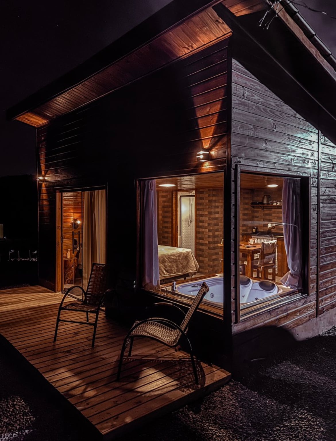 A Cabana LUZ, é a segunda da Villa Vida Cabanas e idealizada para casais, grupos e famílias. Charmosa ,elegante e equipada para proporcionar dias inesquecíveis . Possui aquecimento a gás, calefator, ar condicionado quente e frio e eletrodomésticos modernos para seu conforto. Com área de 180 m2 , a Cabana Luz acomoda confortavelmente até 5 pessoas nas duas suítes e sofá cama, sala integrada, cozinha completa, banheira e um deck maravilhoso com churrasqueira em meio a natureza exuberante.