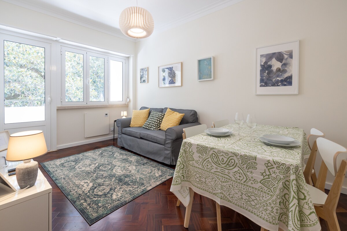 Stylish retro-design apartment in Lisbon’s Rato neighborhood, a bright and private space for 2–3 guests with open city views and no neighbors in front. - Queen-size bed and air conditioning - High-speed Wi-Fi and dedicated workspace - Smart TV and Smart lock (24h check-in) - In-unit washer - Fully equipped kitchen with Nespresso coffee maker - Easy access by walk or public transport