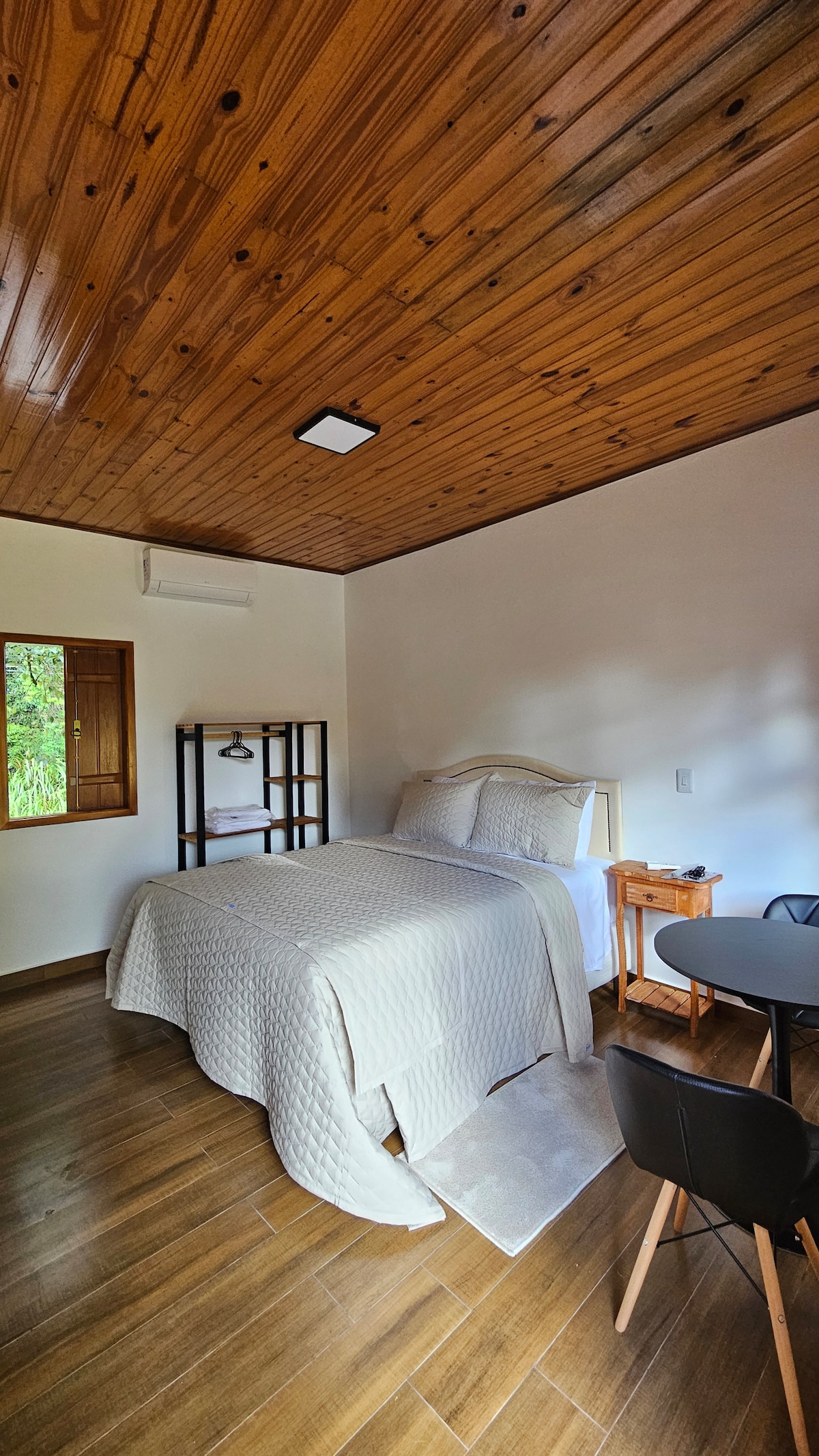 Habitación de 14 m2, cocina americana privada, con microondas, minibar, horno eléctrico de 15 L, vitrocerámica de 2 fuegos, electrodomésticos de cocina para la preparación de aperitivos y comidas ligeras. Baño privado y entrada independiente. Sin aire acondicionado pero con ventiladores potentes. Habitación para NO FUMADORES, con una multa de 250,00 para aquellos que violen esta regla, pero pueden hacerlo fuera de la casa. El alojamiento de más de 30 días puede usar la lavandería de la propiedad sin costo adicional.