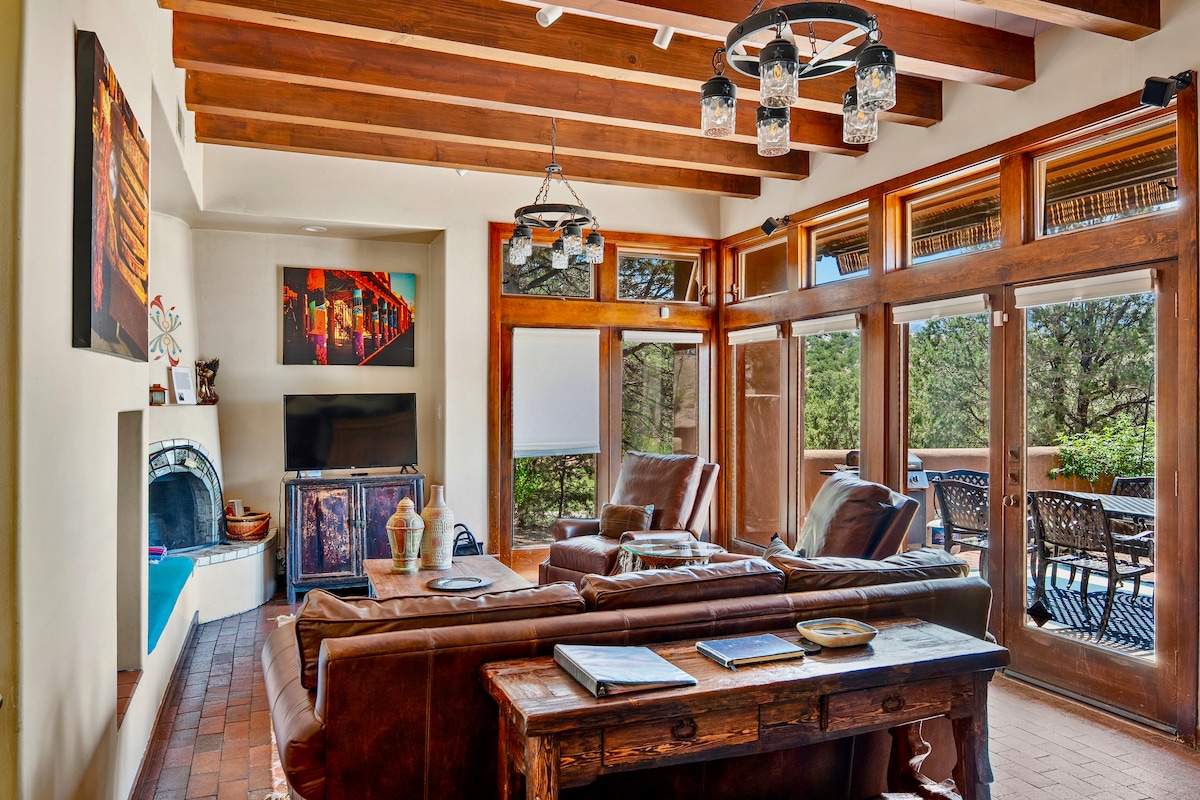 Las puertas francesas de tu suite bellamente decorada con sala de estar y cama cómoda se abren a un entorno rural que es muy tranquilo. Disfrutarás de impresionantes vistas a la extensión del desierto al sur y a las montañas cubiertas de pinos al norte. Contempla esas famosas puestas de sol de Nuevo México después de un día de actividad en el centro histórico de Santa Fe, a solo 20 minutos. Cerca de senderismo, aventuras al aire libre, restaurantes elegantes, museos, lugares de interés, actividades culturales y toda la magia que Nuevo México tiene para ofrecer.