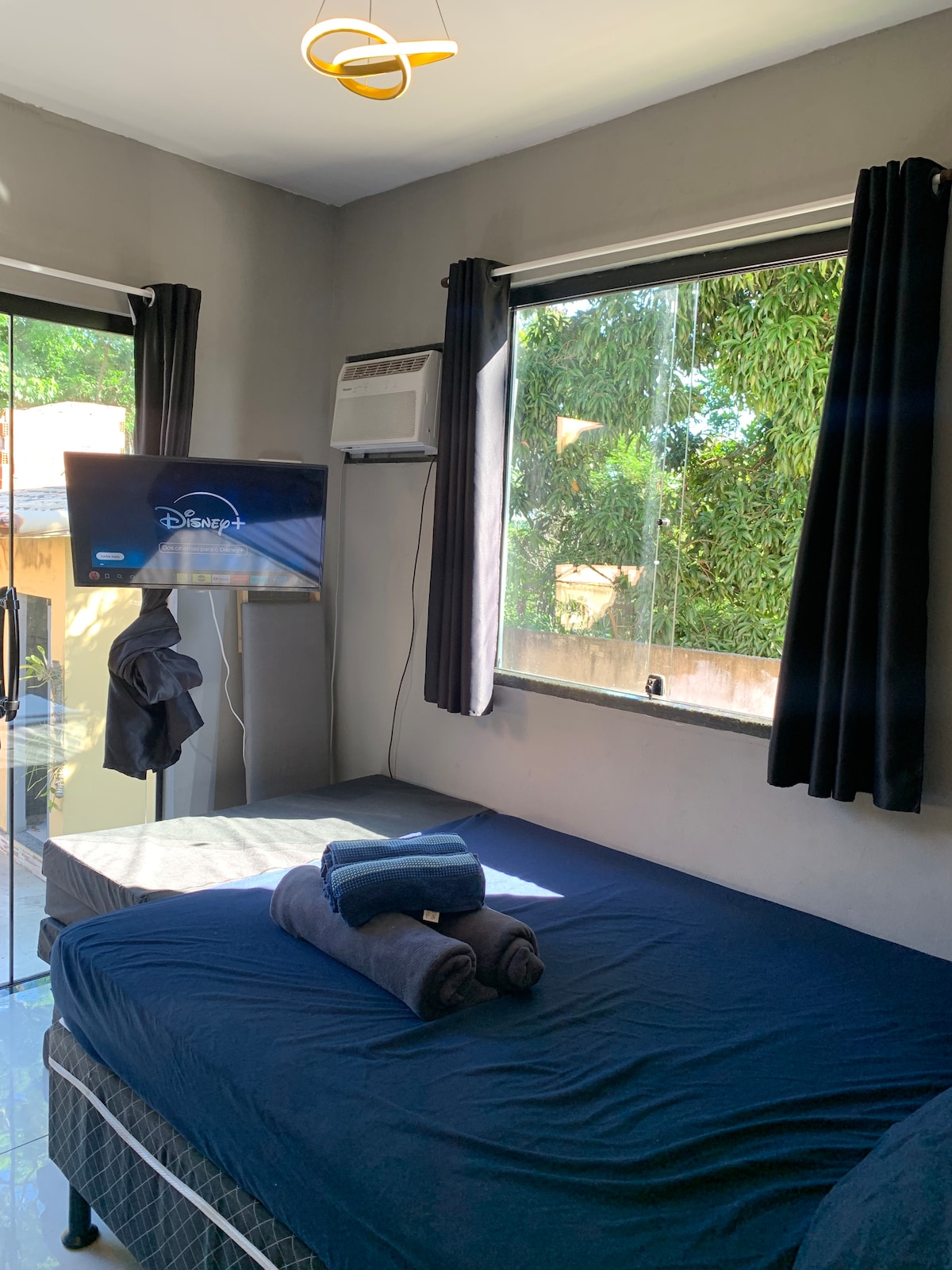 Loft novo e aconchegante, com cama de casal, sofá-cama, ar-condicionado, cozinha completa e Wi-Fi. Ambiente moderno, bem iluminado e confortável, ideal para casal, família ou amigos. Possui banheiro privativo e área gourmet externa e compartilhada. Localização estratégica, a apenas 7 minutos da Praia de Itaúna ou da vila, e 9 minutos do campo de aviação.