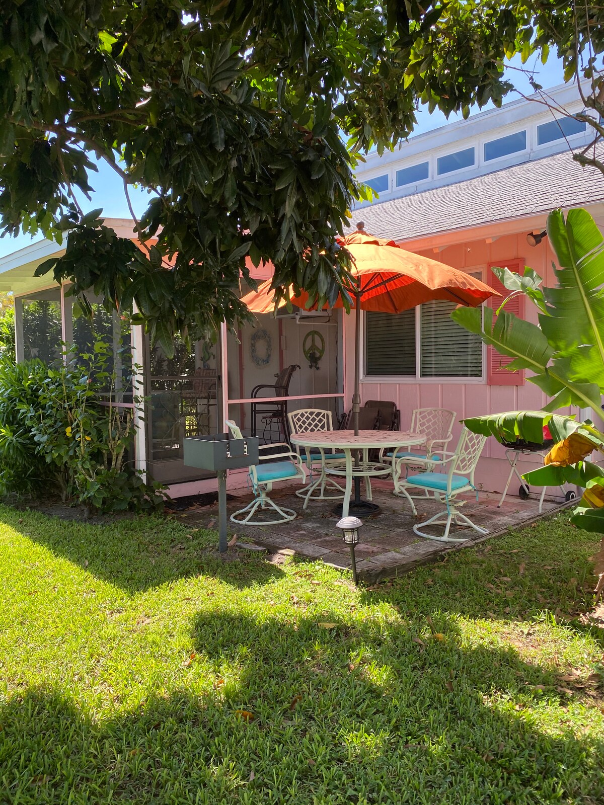 Disfruta de una relajada vida costera en The Pink Palm, un bungalow de diseño a solo unos pasos de la mundialmente famosa playa de Siesta Key. Decorado con esmero con caprichosos toques costeros y arte local curado, este refugio de dos dormitorios combina encanto, comodidad y conveniencia. Pase las mañanas tomando café en el porche cubierto, pasee 15 minutos hasta Crescent Beach o disfrute de cenas al aire libre en el espacioso patio trasero con su área de comedor y parrilla. En el interior, encontrarás una acogedora sala de estar con un lujoso sofá y