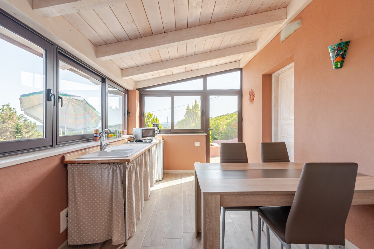 Un delizioso alloggio con ingresso indipendente e vista mare. Situato a 9 min da Budoni e dalle principali spiagge, è composto da open space con cucina,un' ampia e luminosa camera da letto con scorcio sul mare, ed un bagno moderno ed accessoriato. Dotato di tutti i comfort ,ma allo stesso tempo essenziale ed accogliente, è la sistemazione ideale per una coppia in cerca di relax! Completano il tutto posto auto riservato ed ampio spazio esterno dove è possibile anche cenare sotto le stelle.