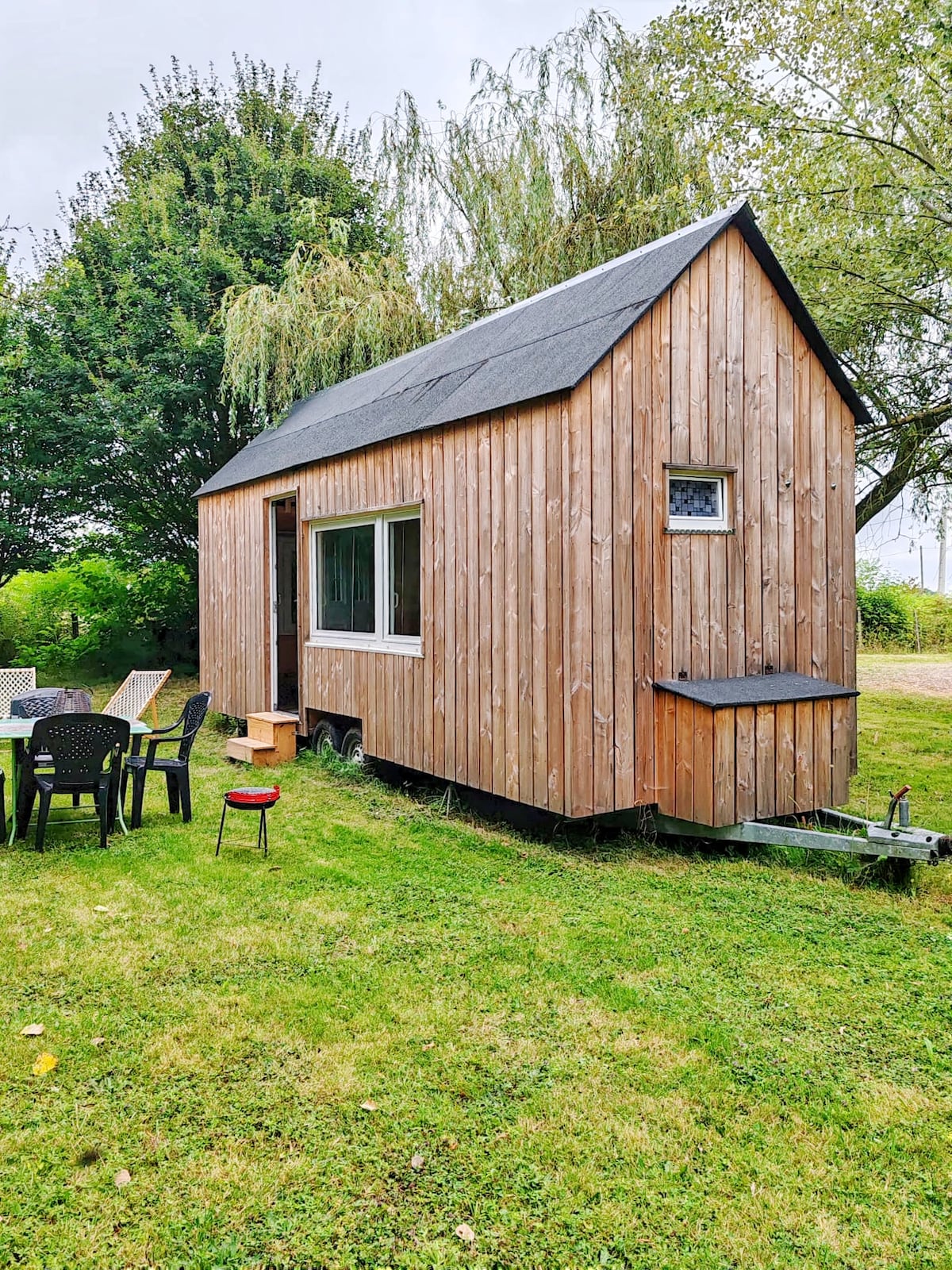 Agradable Tiny House totalmente equipada a orillas del Mayenne y su camino de sirga. Zona de estar con zona de comedor Cocina equipada (nevera - placa - microondas grill) Cuarto de baño con lavabo e inodoro Dos dormitorios en la entreplanta (una cama de 140 y una cama de 160) Ropa de cama y de baño incluidas. Para dos huéspedes: se proporcionan sábanas para una cama, si viaja en pareja pero desea dormir por separado, indique 3 huéspedes en su reserva.