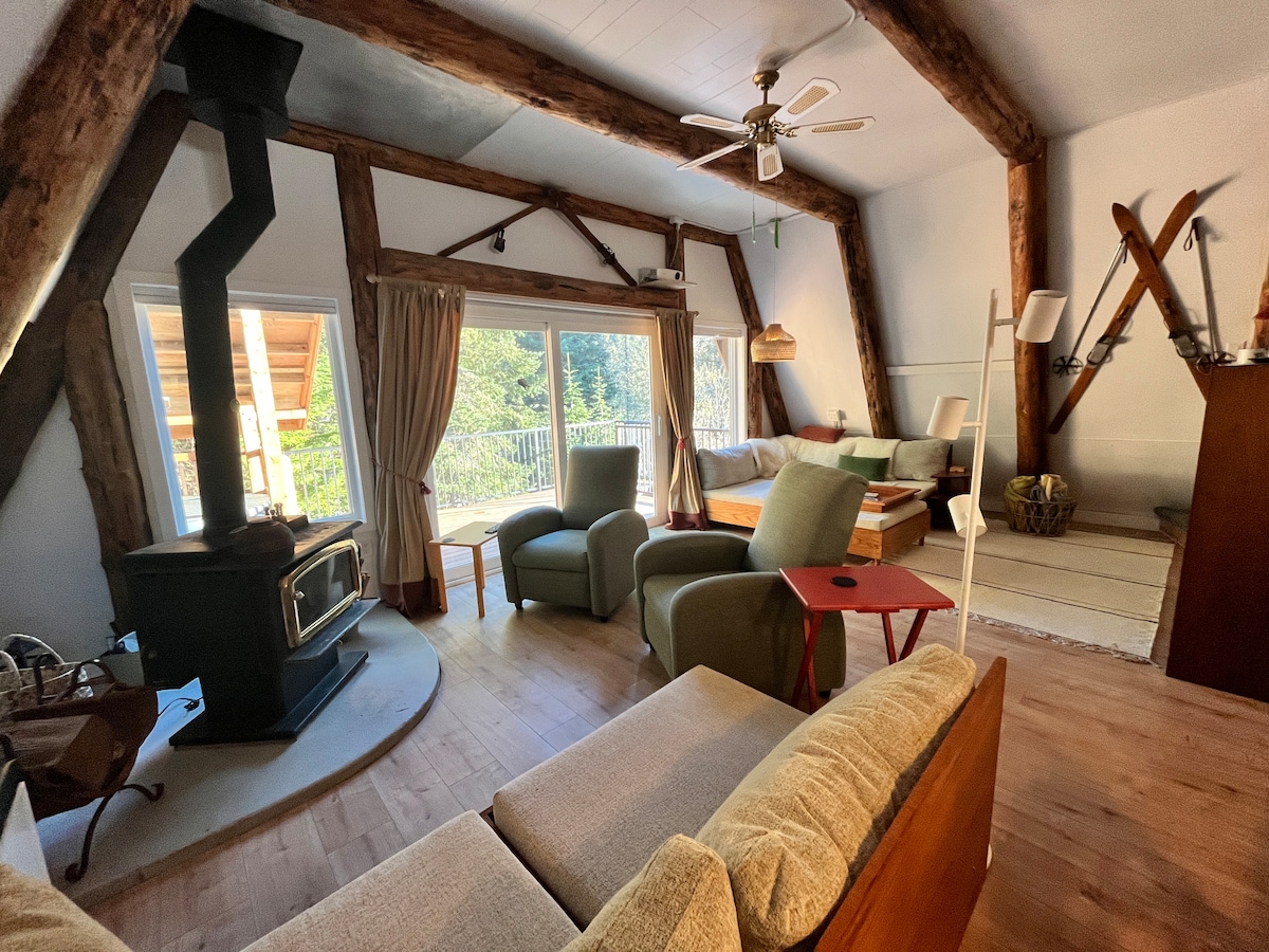 Retiro alpino|Chimenea, vistas al bosque y encanto acogedor