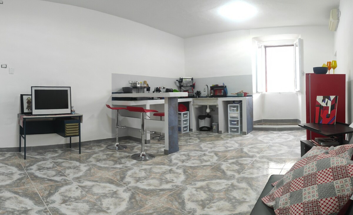 Elegant flat has been completely renovated respecting the characteristics of the place, maintaining the characteristic exposed stone, the tuff, which enhances the historicity of the place. The accommodation is located on the first floor of an old building in the heart of the historic center and overlooks one of the most beautiful and historic streets
