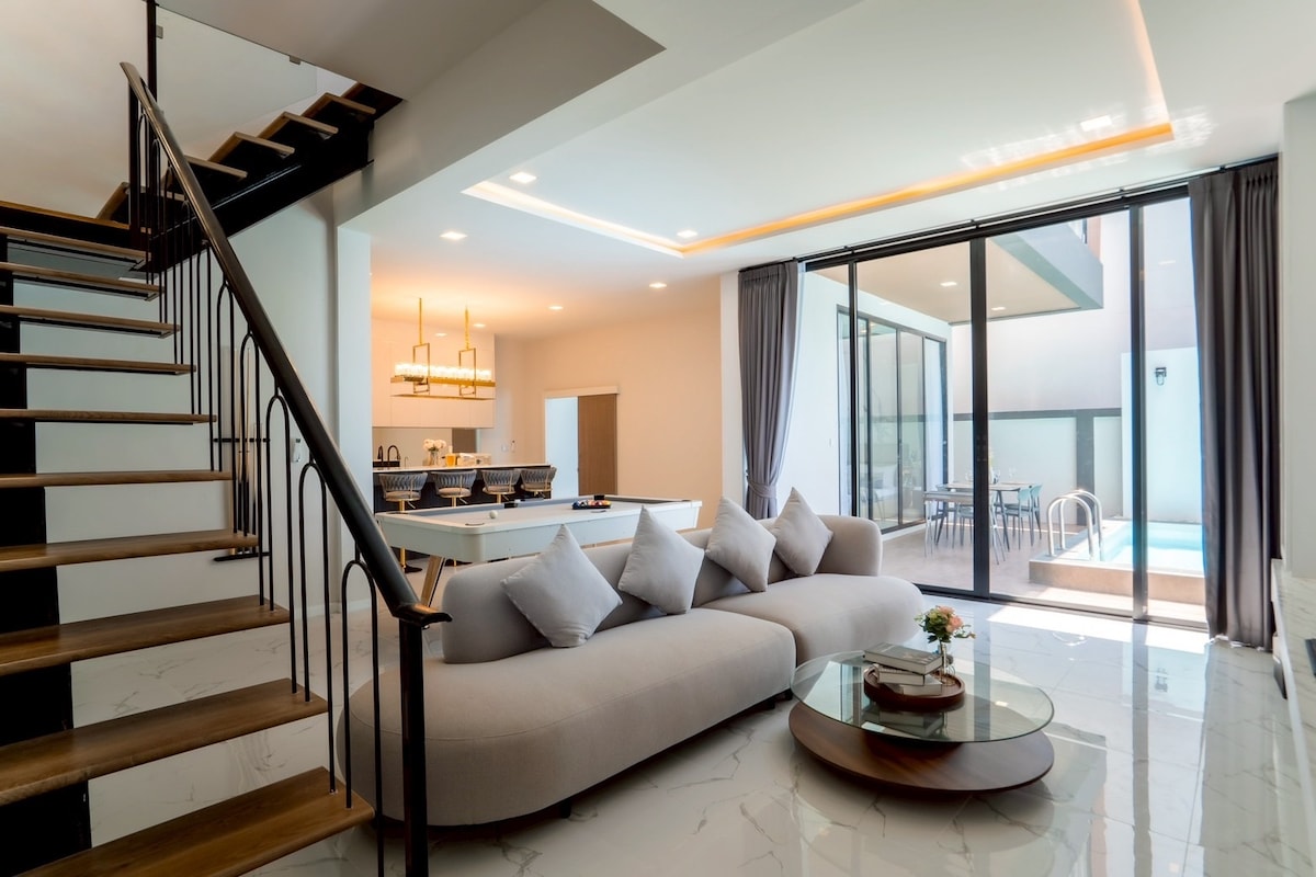 Situated near the beach, this ultimate resort house ensures a memorable trip to Pattaya that you'll cherish for years. Conveniently located next to Columbia Pictures Aquaverse (formerly Cartoon Network Waterpark) & Nong Nooch Tropical Garden (a well-known landmark in Pattaya). It’s just a 15-20 minutes drive to South Pattaya, this luxurious retreat offers an oasis of relaxation with your very own private, shaded swimming pool.