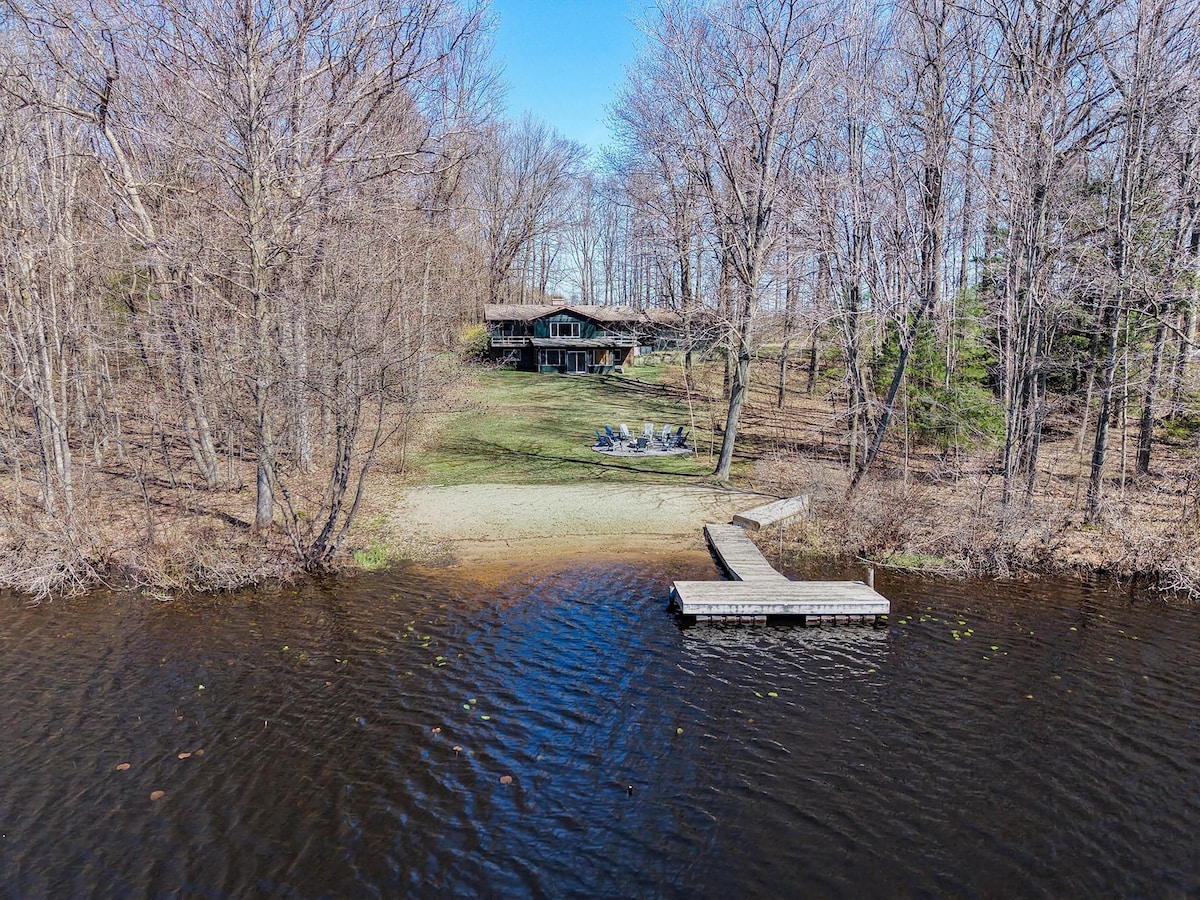 ¡Te damos la bienvenida a la vida de lujo frente al lago! Explora la naturaleza con comodidad y estilo en esta escapada frente al lago. Esta hermosa casa del lago cuenta con cuatro dormitorios, tres baños completos, una cocina de chef equipada con una isla enorme, electrodomésticos modernos y una sala de estar con una hermosa chimenea y TV de 82 pulgadas. La orilla del lago ofrece natación (fondo de arena), un cobertizo privado She Shed (bar único) con una mininevera, wifi, una chimenea y una espectacular zona de descanso donde puedes sentarte, relajarte y contemplar el lago.