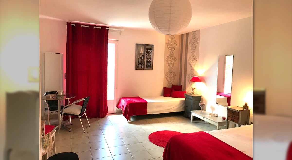 Le damos la bienvenida a nuestra casa situada en una aldea cerca del centro de la ciudad y de las tiendas. La habitación tiene una cama doble y 1 cama individual, desayuno servido bajo reserva por un suplemento (9 €) Podrá disfrutar de nuestra terraza y nuestro jardín sombreado. No admitimos mascotas.