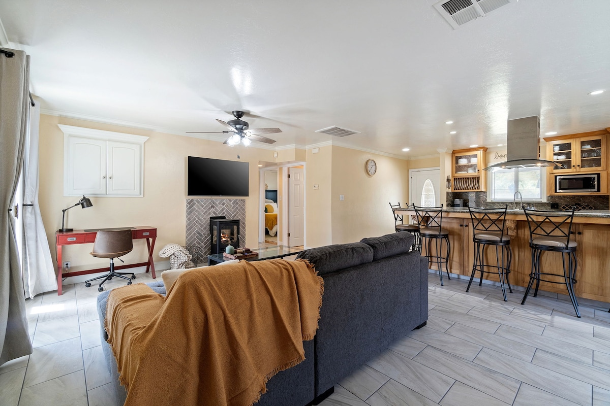 ¡Relájate y desconecta en tu oasis privado en esta casa moderna de mediados de siglo recién remodelada! Al entrar en esta casa de 3 dormitorios y 2 baños, te cautivará su elegante arquitectura de mediados de siglo y su moderna decoración retro que seguro te inspirará. Hemos creado un lugar acogedor, elegante y relajante donde tú y tus invitados podéis relajaros y descansar en el espectacular patio trasero o simplemente pasar el día junto a la acogedora chimenea mientras disfrutas de algunos vinilos.