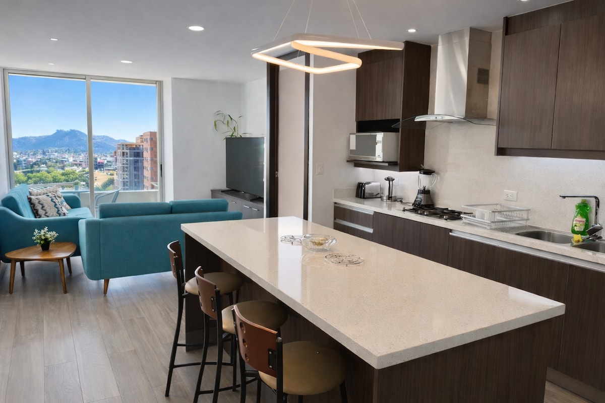 Relax in this luxurious, cozy new apartment. Enjoy a coffee while you watch the sunset on your terrace with a privileged view to the historical center. Open space decorated with european furniture, high ceilings, original mosaic tile floor and a cozy master suite with a queen size bed. The bathtub is perfect for a hot and relaxing shower. It has an amazing location at a walking distance to the historical center. The kitchen, living and dining room are equipped with modern appliances