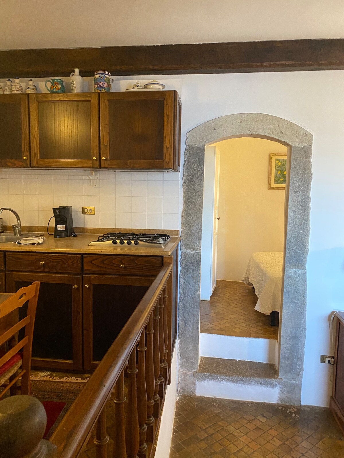 Casa entera. Hermoso apartamento de dos habitaciones ubicado en el centro histórico del pueblo con una terraza de más de 30 metros cuadrados con vistas al mar . El apartamento consta de una pequeña cocina , una sala de estar con un sofá cama, un dormitorio doble y un baño con ducha . La terraza está amueblada con mesa, sillas , sombrilla y tumbonas .