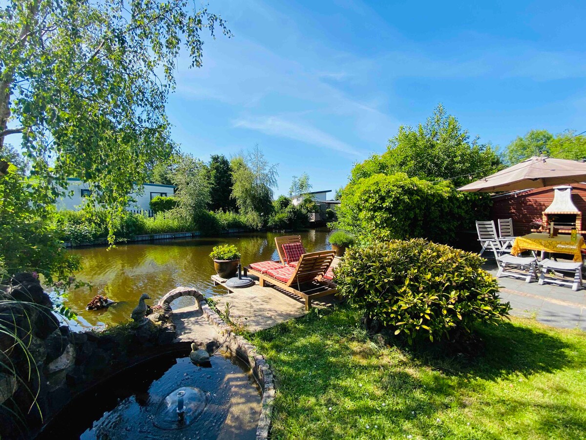 Hermoso chalet cerca del mar, con agua navegable en el patio trasero.
