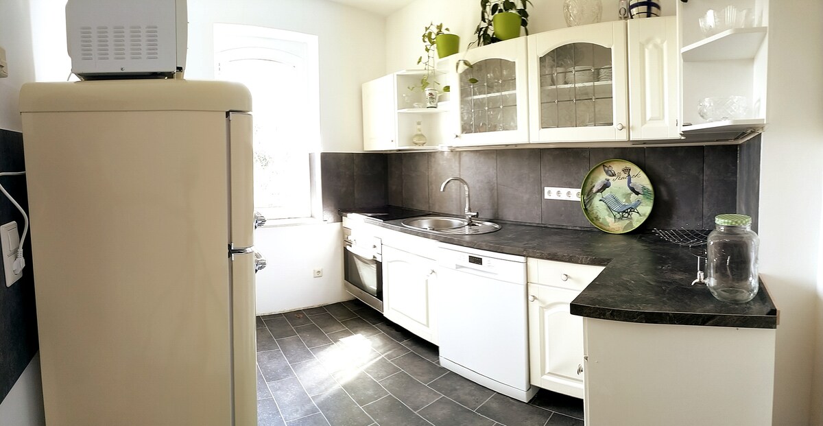 Gran apartamento de vacaciones tranquilo. Totalmente equipado en el tranquilo pueblo de Glesien. Buena conexión con la A9/A14 en 7 minutos, así como con el aeropuerto de Leipzig/Halle y Porsche. En las inmediaciones hay un supermercado, restaurante, médico y una farmacia.