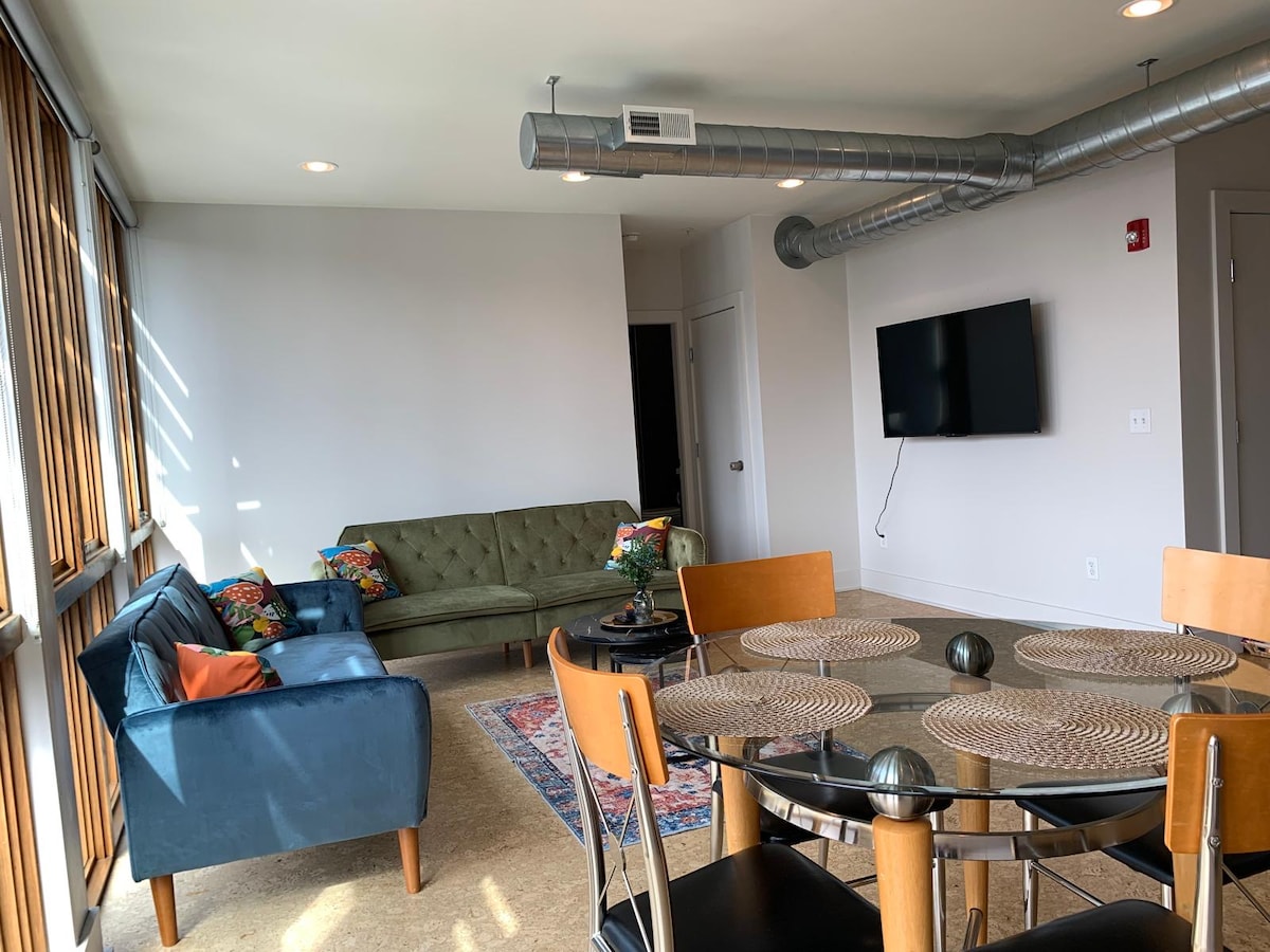 Welcome to your boutique retreat in the heart of downtown Troy! This cozy second-floor studio, designed by a local artist, is tucked away in a standalone Carriage House with a private entrance next to a whimsical mural by local artist Kayla Ek, and a lush New Orleans-inspired courtyard. Just steps from Troy’s best dining, art, nightlife, and wedding venues—and less than a block from the RPI approach—this gem is perfect for a romantic getaway, solo escape, or stylish stay while visiting the area.