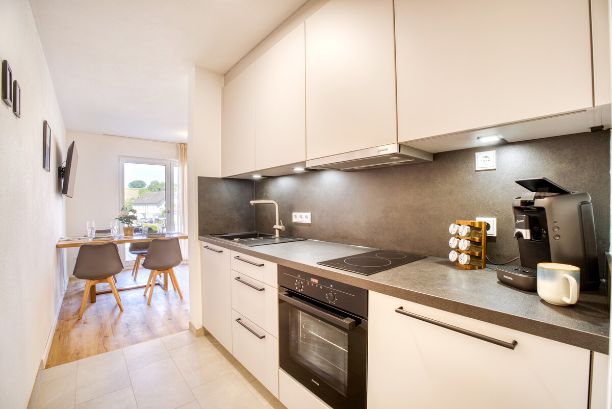 Apartamento de diseño🖤 moderno en las afueras del pueblo: la tranquilidad se une a la comodidad 🖤 ¡Te damos la bienvenida a tu elegante retiro! Nuestro alojamiento recién terminado (40 m², edificio nuevo 2024) está situado en una zona tranquila en el borde de un encantador pueblo, perfecto para aquellos que aprecian la relajación, la comodidad y las buenas conexiones.