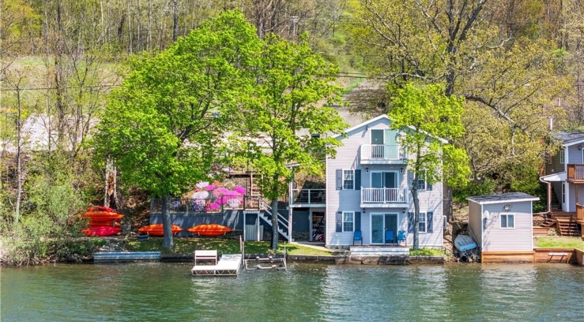 Esta encantadora casa de campo de 2 dormitorios está situada en 40 pies de frente privado del lago Waneta. Un terreno ligeramente inclinado con escaleras te lleva a una terraza y un muelle junto al lago, lo que proporciona acceso directo al agua. La ubicación céntrica ofrece fácil acceso para explorar la belleza escénica de los Finger Lakes. Pasa el día relajándote junto al lago, visitando bodegas y cervecerías cercanas, yendo de compras, cenando o haciendo senderismo. Por la noche, regresa para relajarte y contemplar una impresionante puesta de sol junto al lago.