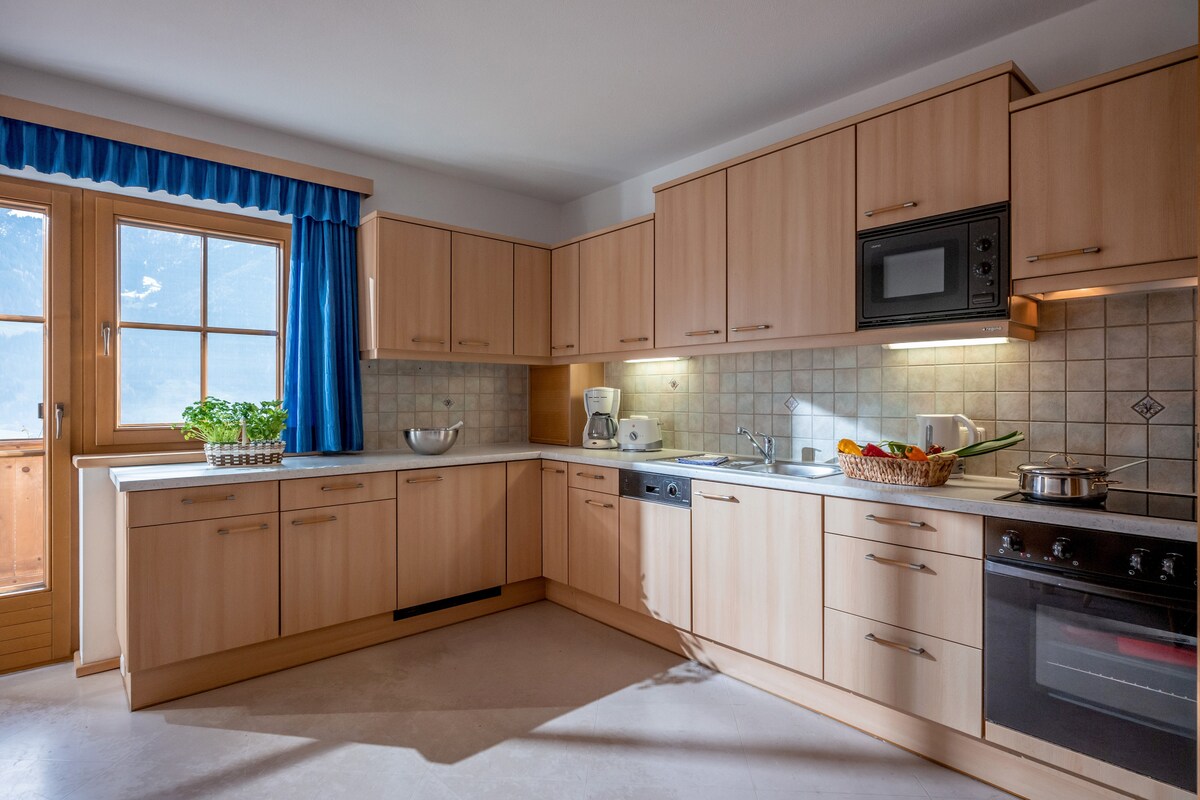 ¡Tus vacaciones de ensueño alpino en Zillertal! Disfruta de una elegante escapada a la montaña en nuestro moderno apartamento en Schwendau. La elegancia alpina con cálidos elementos de madera crea un ambiente acogedor durante todo el año. En invierno, el autobús de esquí te lleva al telesilla en solo 3 minutos, mientras que en verano, la terraza te invita a relajarte después de hacer senderismo o ciclismo. Tres cómodos dormitorios y una amplia sala de estar lo hacen perfecto para familias y amigos. ¡Reserva ahora y experimenta el encanto y la comodidad alpinos!