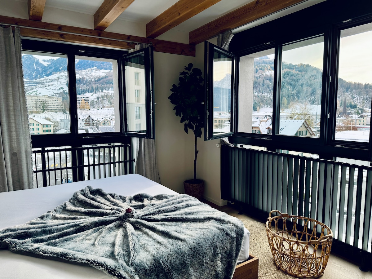 Moderno ático con vistas al lago y a las montañas, balcón privado en un barrio tranquilo. El apartamento se encuentra a solo 5 minutos a pie del lago y del bosque. Ideal para los amantes del deporte, el windsurf, la natación, el senderismo, el ciclismo y el esquí. La estación de windsurf en el lago de Uri se encuentra a 5 minutos a pie. Excelente punto de partida para explorar la Suiza Central, a 30 minutos en coche de Lucerna y del Tesino. Hay una parada de autobús a 200 metros, y restaurantes y bares están a poca distancia a pie.