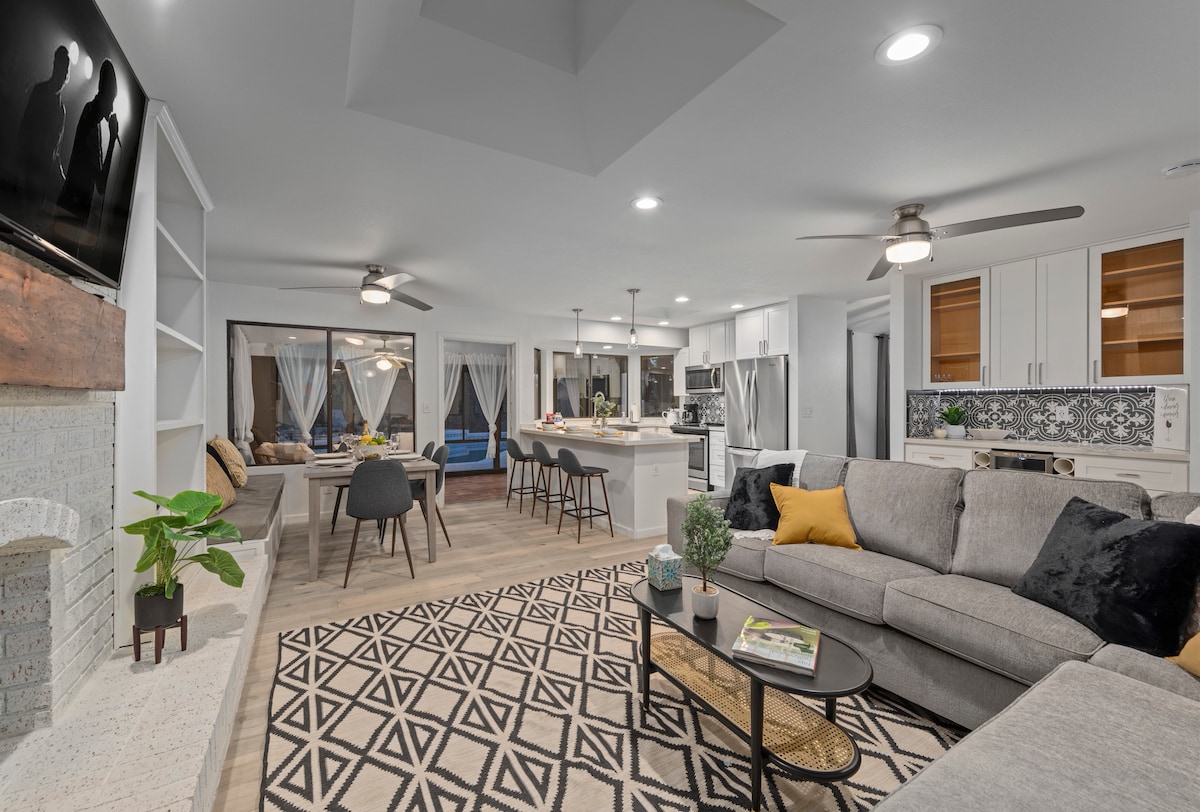 ¡Nueva CASA! ¡Marzo de 2024! ¡PISCINA CLIMATIZADA GRATIS EN INVIERNO Y JACUZZI + CERO TAREAS DE LIMPIEZA! ¡NO PAGUES POR LA CALEFACCIÓN DE LA PISCINA EN EL AIRBNB DE OTRA PERSONA! - NUEVA y hermosa casa remodelada de 3 dormitorios con patio trasero estilo resort, ¡a solo minutos del casco antiguo de Scottsdale! Piscina climatizada gratuita, jacuzzi, chimenea, minigolf, ping pong, ajedrez gigante, wifi más rápido y televisores inteligentes. La casa está totalmente equipada con una barra de café de cortesía, barbacoa al aire libre y el césped más hermoso para que toda la familia disfrute. ¡TV POR CABLE!