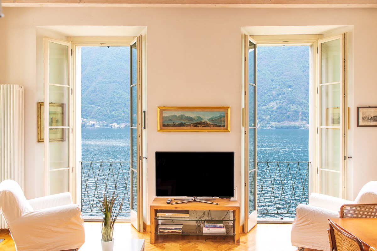 Este ático tiene unas vistas fantásticas, ya que las ventanas dan al lago, justo enfrente de Villa Pliniana. El apartamento forma parte de una antigua villa de finales del siglo XIX, reformada. Ideal para relajarse, escuchando el sonido de las olas del lago, que bañan la casa. Se encuentra en el centro del típico pueblo de Carate Urio, frente a la cafetería, la farmacia, dos tiendas de alimentación y la parada de los autobuses C10 y C20. El aparcamiento público está delante de la entrada de la casa.