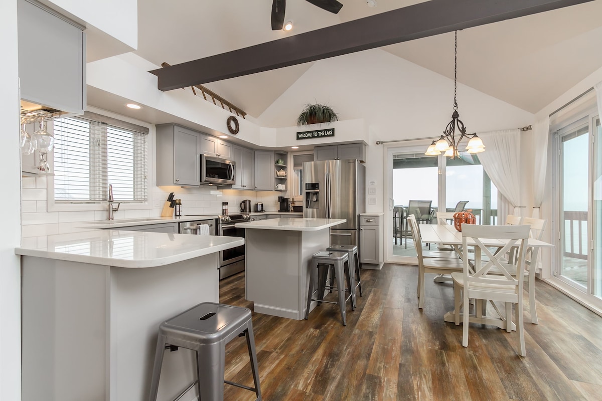 75’ Lakefront | 6 Outdoor Zones | Wellness Nook Relax at True North, a 2,500 sq ft sanctuary with 6 outdoor living spaces (4 patios/2 decks). ✔ Host: Custom beverage bar with 50lb ice maker & wine fridge (BYOB). Enjoy the granite kitchen & wood-fired pizza oven. ✔ Wellness: CLIMBR gym with lake views, canoe/life vests, & sandy beach access (0.1 mi). ✔ Retreat: Dual Master Suites with private balconies. Spot Bald Eagles & swans from the fire pit. High-end comfort for 8!