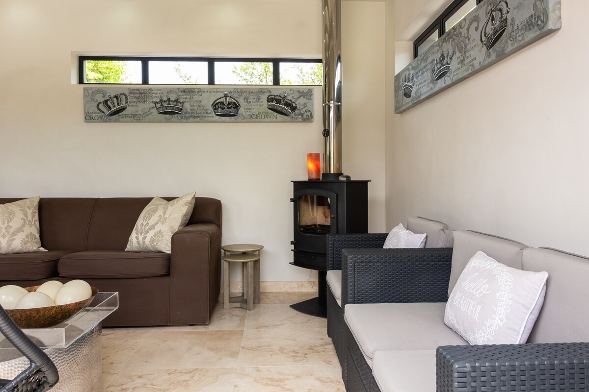 Bienvenidos a Crown Comfort, un elegante y lujoso refugio para parejas o familias que buscan privacidad, romance y comodidad sin complicaciones cerca de las principales atracciones de Ciudad del Cabo. Disfrute de su espacio privado con piscina climatizada, jacuzzi, sala de estar al aire libre, comedor con techo de vidrio, parrilla y horno para pizza. El estacionamiento seguro detrás de una puerta automatizada le brinda tranquilidad para disfrutar de una estancia relajante e inolvidable.